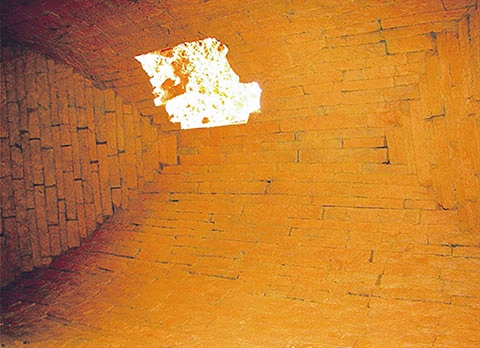 | Le dôme (2e pièce), avec le trou par lequel se sont introduits des pillards. |