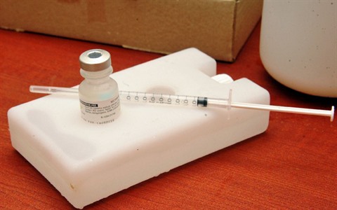 | Une dose de VSV-EBOV, vaccin expérimental développé contre le virus Ebola, le 10 mars 2015 à Conakry en Guinée. |