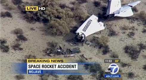 Les deux pilotes étaient toujours à bord lors de l'explosion et de l'impact au sol. Un parachute aurait été aperçu au dessus de la base Mojave Air and Space Port en Californie d'où l'appareil a décollé avec l'avion qui le transportait. Le pilote qui a survécu a été héliporté jusqu'à un hôpital.
