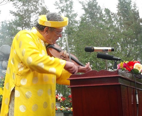 | Mike Boehm joue du violon lors de la cérémonie de commémoration des victimes du massacre de My Lai, le 16 mars 2017 à Quang Ngai. |