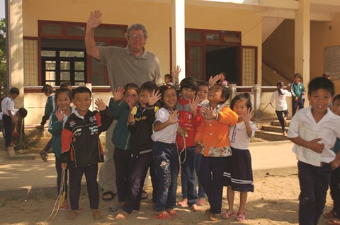 | Roy Mike Boehm entouré d’enfants issus de minorités ethniques dans une école primaire de Quang Ngai parrainée par la MQI dans le cadre d’un projet d’accès à l’eau potable. |