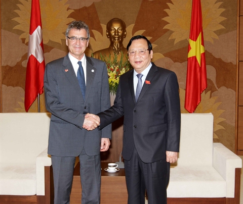Lors d'une rencontre vendredi 27 mars à Hanoi avec le chef de la délégation parlementaire suisse, Pierre-François Veillon, présent au Vietnam pour participer à la 132e Assemblée de l'Union interparlementaire (IPU-132), Huynh Ngoc Son a indiqué que cette coopération se développe fortement en tous domaines : politique et diplomatie, économie, commerce et investissement, coopération au développement, éducation et formation, et santé.