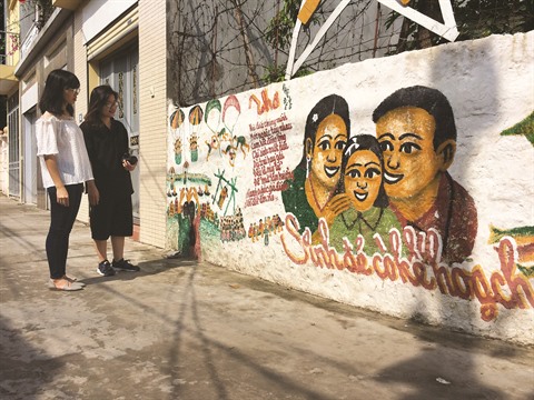 «J’aime bien ces peintures murales qui contribuent non seulement à embellir la ruelle, mais aussi à transmettre aux habitants du coin, aux jeunes notamment, des messages significatifs sur la protection de l’environnement, le patriotisme, le bonheur familial, les sentiments entre mère et enfant, et même sur le planning familial», partage Ngô Thi Tân, une voisine. Avant d’ajouter : «Ces peintures permettent aussi de se débarrasser des publicités qui viennent parasiter nos murs».