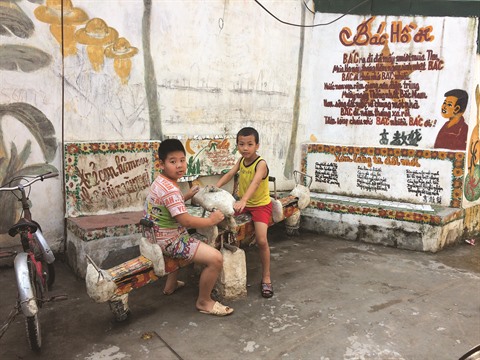 En dehors des peintures murales, la ruelle Ao Dài est devenue un espace romantique grâce aux dizaines de pots de plantes d’agrément installés par l’Association des femmes du quartier. Et pour parachever le tout, une balançoire à bascule - là aussi fabriquée par M. Thinh - réservée aux enfants de la ruelle, est placée juste à côté d’un mur sur lequel est écrit un poème sur le Président Hô Chi Minh.