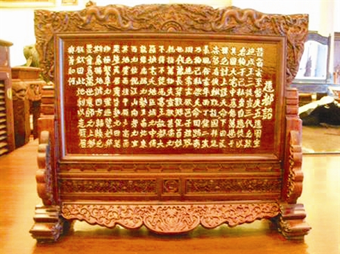 | La gravure sur bois «Chiêu Doi Dô», l’une des œuvres les plus importantes du calligraphe, créée spécialement pour l’anniversaire du Millénaire de Hanoi. |