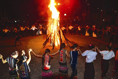 Le village de Dang Ya, à la tombée de la nuit. Sur l’esplanade de la nhà rông (maison commune sur pilotis), un grand feu de camp est allumé autour duquel la foule se rassemble et se meut aux rythmes des gongs et des khèn (sorte de flûtes de Pan). C’est alors que les chants des habitants de la montagne, au pied du mont Lang Biang, commencent. Animés par la musique et le ruou cân (alcool de riz à siroter avec un chalumeau de bambou), on entonne des airs folkloriques du Tây Nguyên (hauts plateaux du Centre). On chante en chœur, en duo, en solo… Les chants se prolongent jusqu’à minuit.