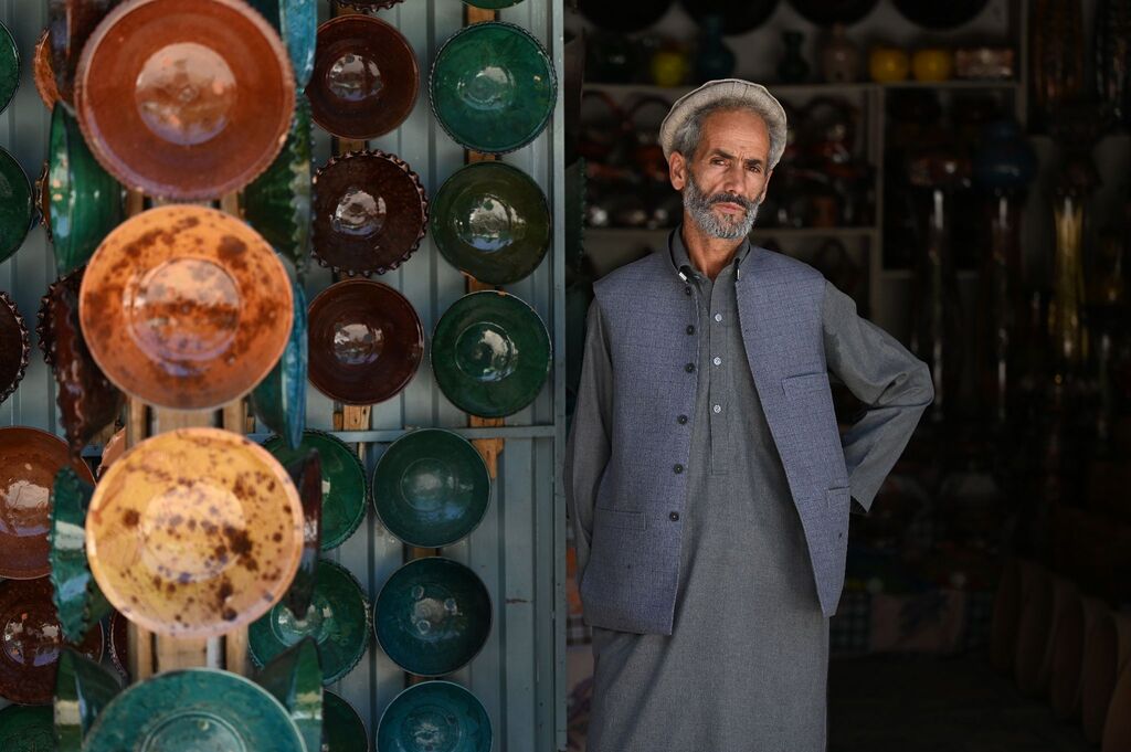 | Un vendeur dans son magasin de poteries, dans le district d’Istalif, près de Kaboul. |