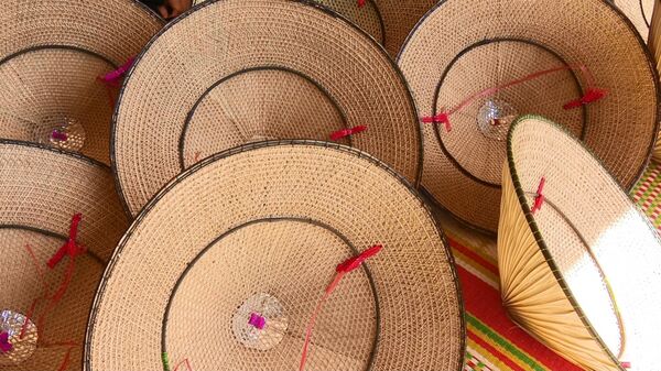 | Lavage des feuilles de dong (Phrynium placentarium) pour l’emballage. |