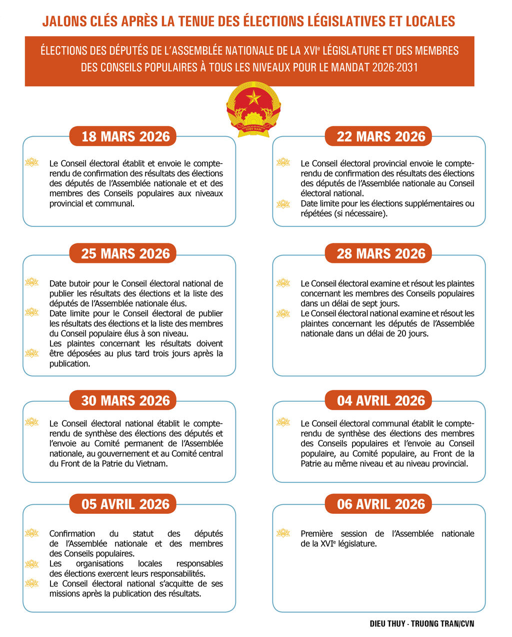 la reconstruction nationale, puis la période du Dôi moi (Renouveau) et de l’intégration internationale. Au fil de ces huit décennies, le bulletin de vote s’est imposé comme un symbole durable de la confiance populaire, de la solidarité nationale et de la volonté collective de construire l’avenir du pays.