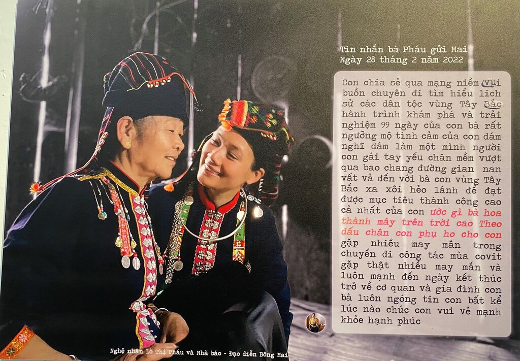 Elle se remémore les moments inoubliables vécus, les histoires touchantes et les rencontres avec de véritables amis. “C’était un voyage que j’ai effectué seule avec ma voiture. Mais je ne me suis jamais sentie seule car j’étais avec des familles qui m’ont accueillie chaleureusement et m’ont encouragée, même après mon départ”, affirme-t-elle en montrant une photo qu’elle a prise avec Lo Thi Phau, une septuagénaire de l’ethnie Khang, avec un extrait de son message. “Ma chère Mai, j’admire ton voyage. Toi, une femme fragile, mais qui a osé venir seule pour nous rencontrer, les gens éloignés du Nord-Est. Je souhaite pouvoir m’incarner en nuages pour suivre tes pas, pour te protéger de telle sorte que tu ne rencontres que la chance lors de ton voyage en ce temps de COVID... J’attends toujours de tes nouvelles”, écrit Mme Phau, domiciliée à Son La (Nord), le 28 février 2022 à Bông Mai.