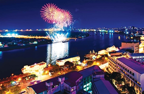 | Le «Grand Café» offre une vue exceptionnelle de la rivière Saigon à l’occasion d’un feux d’artifice. Photo : Saigontourist/CVN |