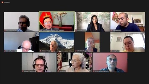 | Participants au webinaire marquant le 77e anniversaire de la Révolution d’Août et de la Fête nationale du Vietnam. |