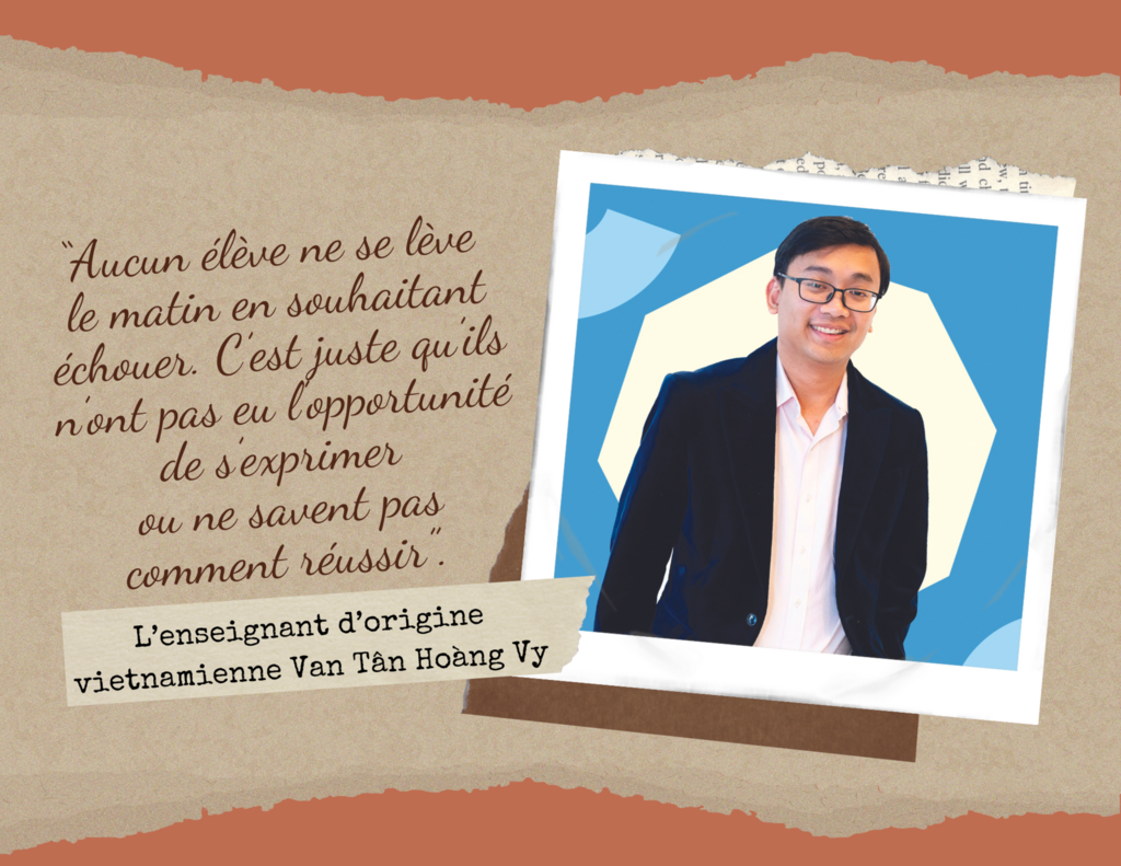 “Aucun élève ne se lève le matin en souhaitant échouer. C’est juste qu’ils n’ont pas eu l’opportunité de s’exprimer ou ne savent pas comment réussir”. Van Tân Hoàng Vy a pris conscience de cela alors qu’il était professeur de mathématiques dans le lycée Sam Houston au Texas, classé au plus bas niveau par la Commission de l’éducation de cet État du Sud des États-Unis pendant six années consécutives. Cette année-là, à 23 ans, le jeune professeur vietnamien venait d’obtenir son diplôme dans l’une des universités les plus prestigieuses du Royaume-Uni, l’Imperial College London. Lui et d’autres jeunes enseignants avaient été recrutés dans l’espoir de renouveler et améliorer la qualité de l’enseignement dudit lycée.