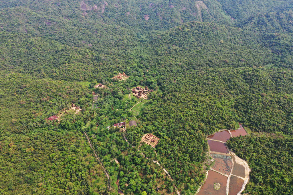 | Vue aérienne du sanctuaire de My Son, site classé au patrimoine culturel mondial de l'UNESCO dans la province de Quang Nam (Centre). |