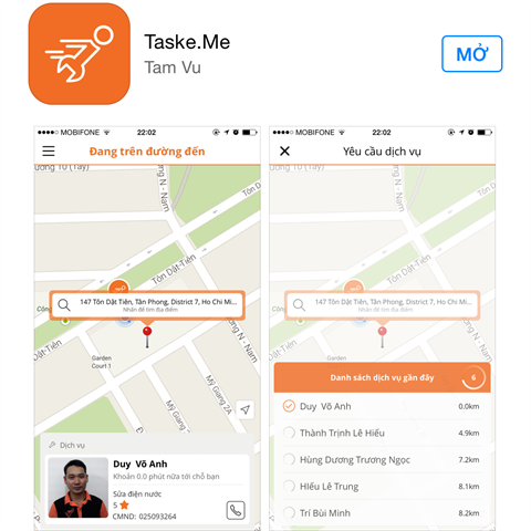 Taske est une application qui permet d’engager des professionnels dans des domaines tels que le ménage, le transport, la réparation de meubles, etc. Elle utilise la localisation GPS.