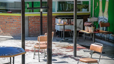 | Une terrasse de la discothèque où a eu lieu une attaque à main armée dans l'État de Guanajuato (Centre du Mexique) qui a fait au moins 15 morts. |