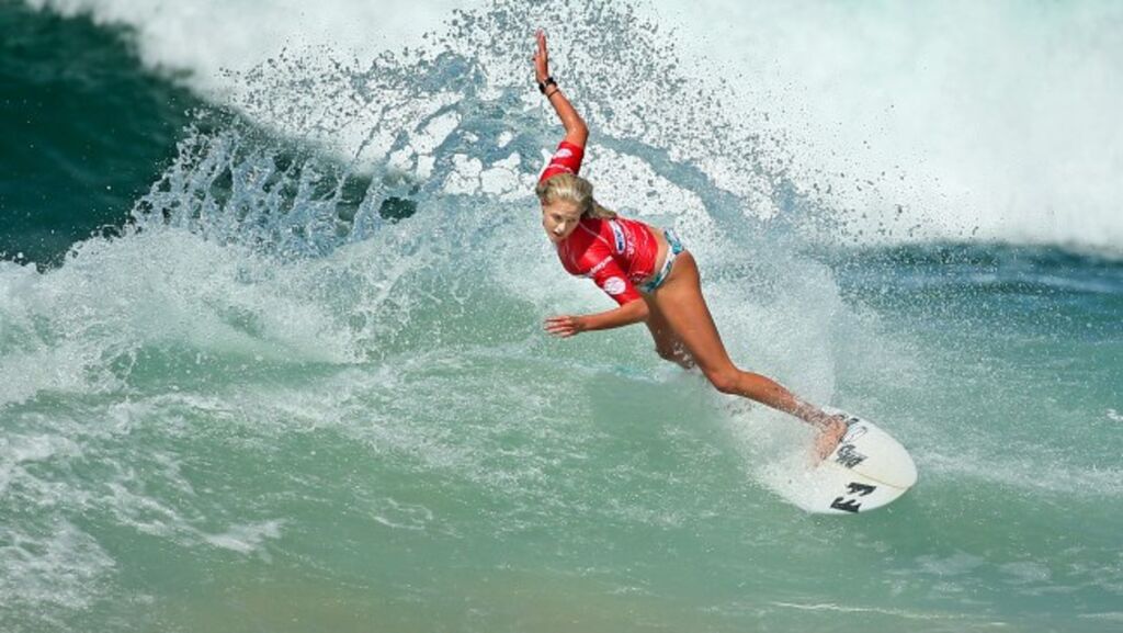 | Laura Enever a choisi d'aller affronter ces murs d'eau à la force des bras. |