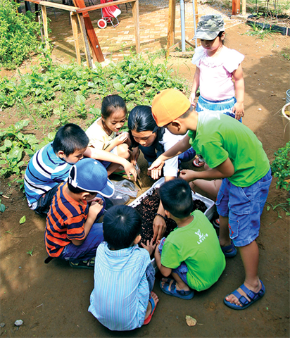 “Auparavant, alors que mes enfants étaient mornes, je leur ai donné mon Ipad pour jouer. Je pensais qu’ils étaient passifs car ils parlaient peu, mais depuis que je viens dans ce jardin, ils sont très actifs et très adroits aussi, et toute la famille a plus de temps pour discuter”, confie Lê Lâm, un père de deux enfants de 3 et de 5 ans.