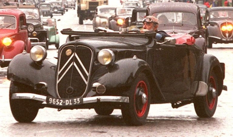 Une ancienne Traction avant cabriolet Citroen descend, le 27 septembre 2014, l'avenue des Champs Élysées à Paris. Photo : AFP/VNA/CVN |