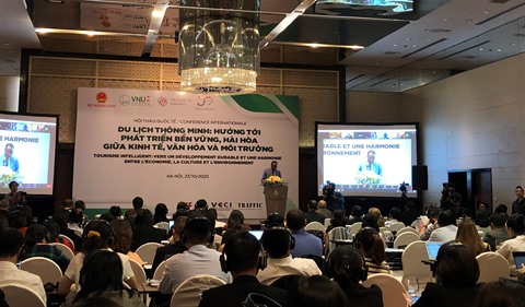 | Vue générale de la conférence internationale "Tourisme intelligent : vers un développement durable, une harmonie entre économie, culture et environnement", le 23 octobre à Hanoï. |