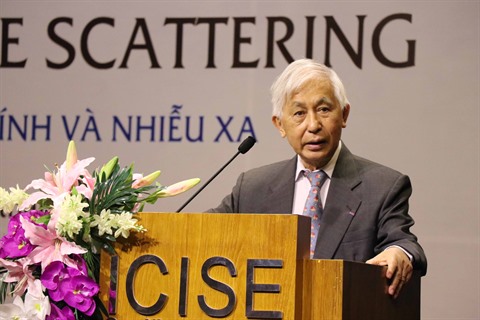 | Le Professeur de physique Trân Thanh Vân prend la parole lors de la conférence. |