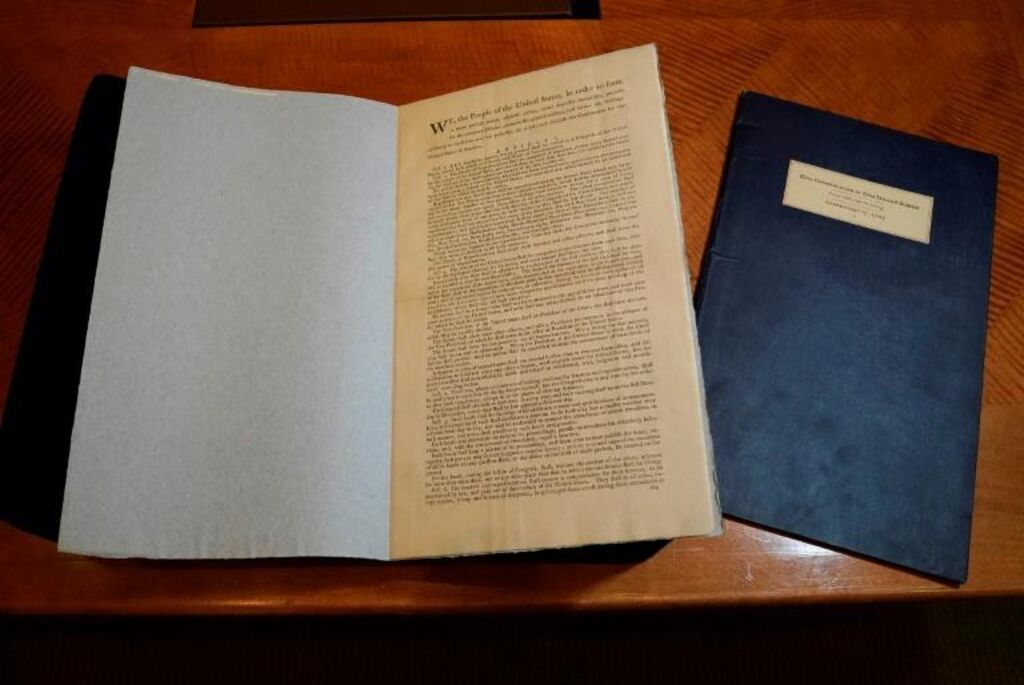 L'exemplaire de ce texte constitutionnel, signé à Philadelphie le 17 septembre 1787 des mains des "Pères fondateurs" des États-Unis, parmi lesquels George Washington, Benjamin Franklin et James Madison, fait partie d'une collection privée, comme l'exemplaire vendu déjà par Sotheby's à New York en novembre dernier pour 43 millions d'USD.