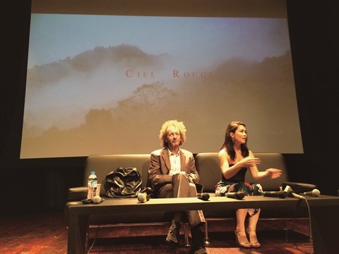 | Le réalisateur Olivier Lorelle et l’actrice franco-vietnamienne Audrey Giacomini lors d’une séance de présentation du film Ciel Rouge à L’Espace, le 28 juin 2017 à Hanoï. |