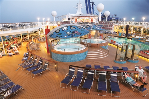 | Farniente sur le pont du Voyager of the Seas où se trouve la piscine. |