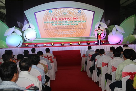 | Cérémonie de publication d'exportation du premier lot des pommes étoilées fraîches aux États-Unis, le 26 décembre 2017 à Tiên Giang |