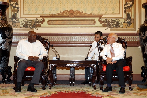 | Le président du Comité populaire de Hô Chi Minh-Ville, Lê Hoàng Quân (droite), et le vice-président du Conseil d'État de Cuba, Salvador Valdés Mesa, le 2 juin à Hô Chi Minh-Ville. |