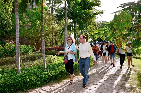 | Des touristes de Famtrip en visite du complexe de villégiature Sea Links City, ville de Phan Thiêt, province de Binh Thuân. |