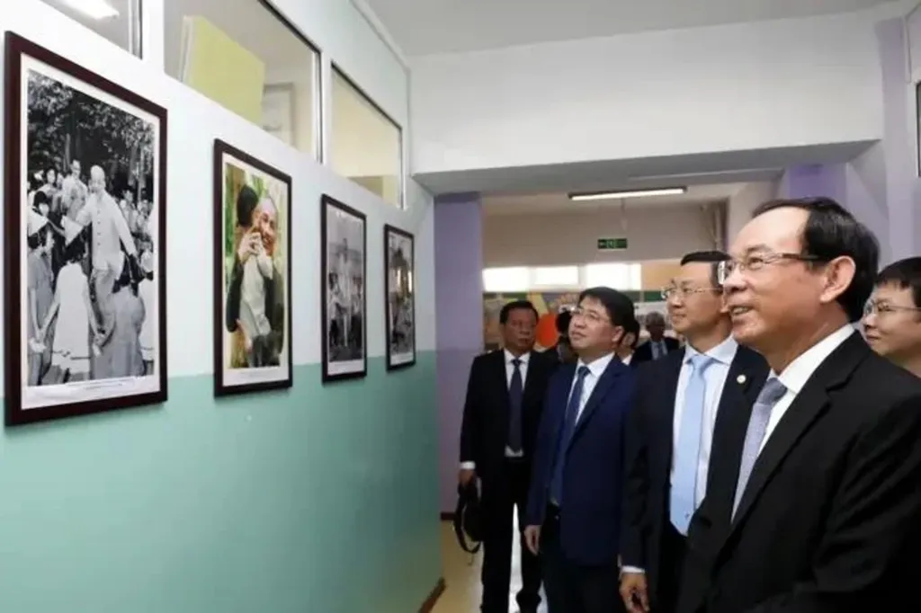 Durant son séjour, la délégation a visité l'école N°14 portant le nom du Président Hô Chi Minh à Oulan-Bator. Ici, elle est allée déposer une gerbe de fleurs au pied du buste du Président Hô Chi Minh et a échangé avec les responsables et élèves de l'école.