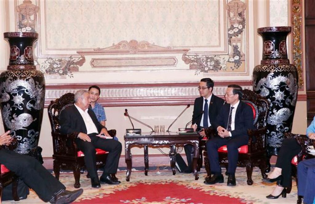 | Le président du Comité populaire de Hô Chi Minh-Ville, Phan Van Mai (droite), et le secrétaire général de la CTC, Ulises Guilarte de Nacimiento, le 30 juin à Hô Chi Minh-Ville. |