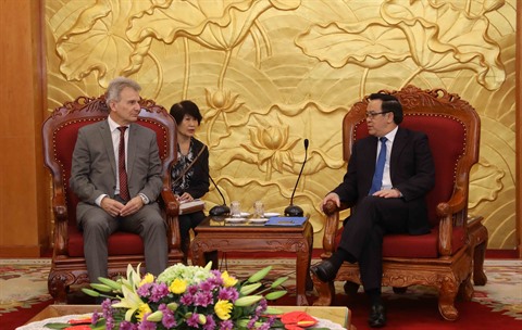 | Hoàng Binh Quân (droite), président de la Commission centrale des relations extérieures du PCV, et Erich Foglar, président de la Confédération autrichienne des syndicats, le 21 novembre à Hanoï. |