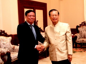 | Le vice-Premier ministre lao Somsavad Lengsavath (droite) a reçu à Vientiane le vice-président de la Cour populaire suprême du Vietnam, Dang Quang Phuong, en visite au Laos du 15 au 19 mai. |