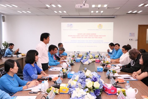 | Séance de travail de la délégation de la Fédération syndicale mondiale, le 5 septembre à Binh Duong (Sud). |