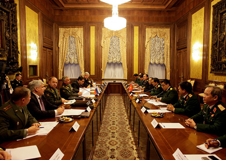 Les deux parties ont souligné la nécessité d'intensifier davantage la collaboration entre les deux ministères de la Défense afin qu'elle soit à hauteur du partenariat stratégique intégral entre le Vietnam et la Russie. Les deux parties se sont déclarées satisfaites des fruits de leur coopération dans la défense et ont discuté des mesures propres à un renforcement de leurs relations, notamment par une assistance de la Russie dans la formation d'officiers vietnamiens.
