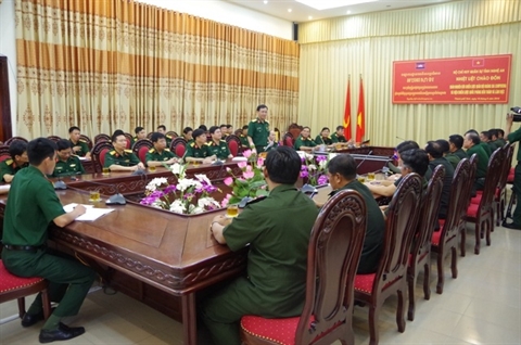 | Séance de travail entre la délégation de l’Armée royale du Cambodge et le Commandement militaire de la province de Nghê An (Centre), le 16 août. |