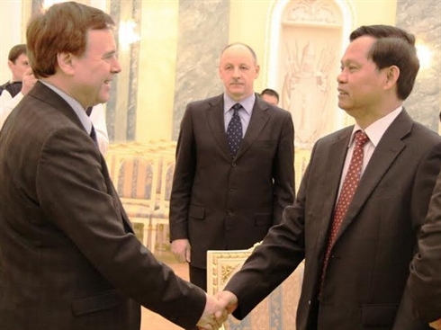 | L’inspecteur général du gouvernement Huynh Phong Tranh (droite) et le premier vice-procureur général de Russie, Aleksander Buksman, le 14 avril à Moscou. |