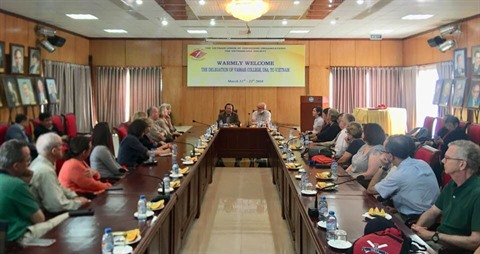 | Séance de travail entre l’Association Vietnam - États-Unis et la délégation de l'Université de Vassar des États-Unis, le 13 mars à Hanoï. |