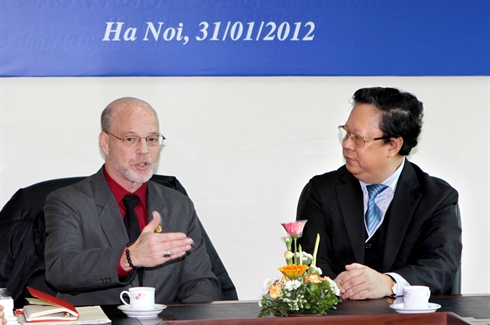 | Le président de l'Union des organisations d'amitié du Vietnam, Vu Xuân Hông (droite) et le |