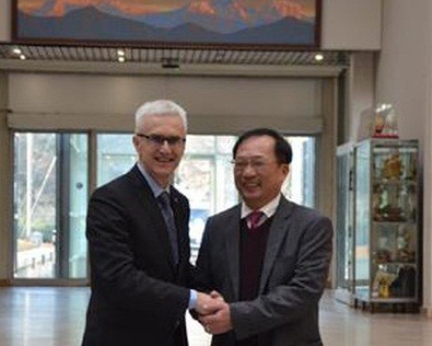 | Le secrétaire général d’Interpol, Jürgen Stock (gauche) et le général Nguyên Van Thành, vice-ministre vietnamien de la Police, le 16 décembre à Lyon |