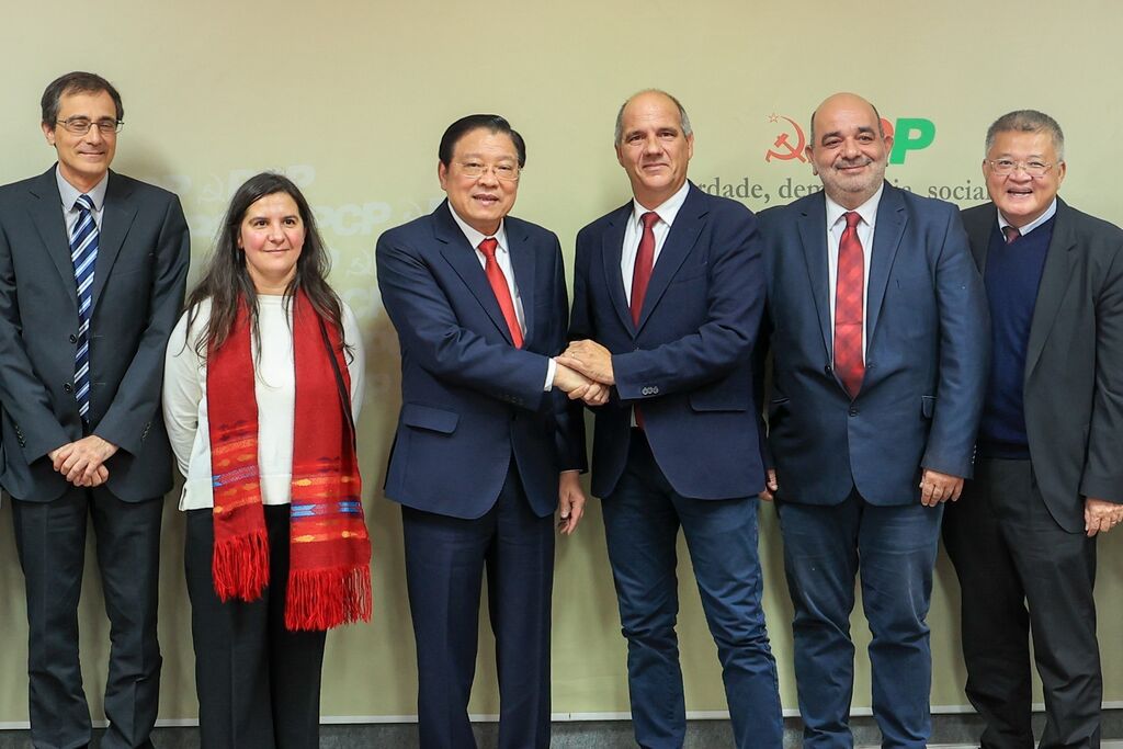 | Phan Dinh Trac (3e à gauche) et Paulo Raimundo (3e à droite), secrétaire général du Parti communiste portugais. |