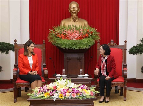 | Truong Thi Mai (droite), secrétaire du Comité central du Parti communiste du Vietnam, et Sevinj Fataliyeva, responsable du Département des relations extérieures d'Azerbaïdjan. |