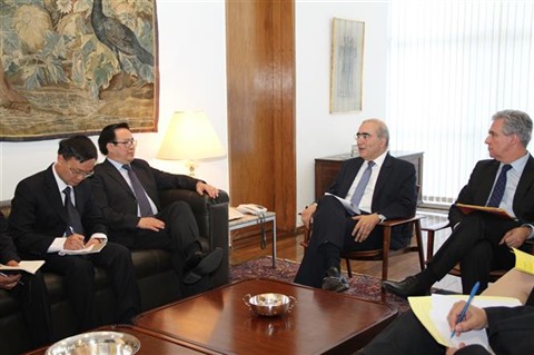 | La séance de travail entre la délégation du Parti communiste du Vietnam (PCV) et le ministre p.i des Affaires étrangères, Marcos Garvao, le 15 septembre au Brésil. |
