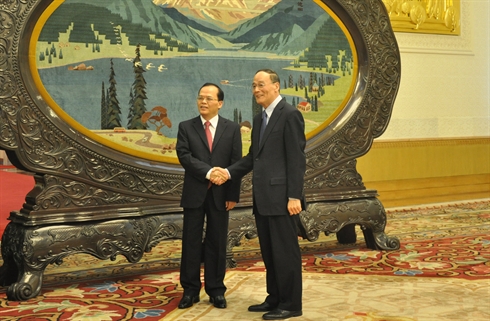 Wang Qishan a affirmé que le Parti, le gouvernement et le peuple chinois faisaient grand cas des relations d'amitié traditionnelle avec le Vietnam et souhaitaient les développer dans l'intérêt commun. Il a pris en haute estime les importantes activités d'édification du PCV depuis son 11e Congrès national, en soulignant que ces expériences serviraient de référence pour la Chine. Il a souhaité voir les deux Partis échanger régulièrement des expériences sur leur édification et la direction du pays.