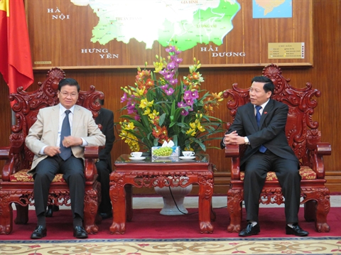 | Le secrétaire du Comité provincial du Parti communiste du Vietnam et président du Comité populaire de la province de Bac Ninh (Nord), Nguyên Nhân Chiên (gauche), et le vice-Premier ministre et ministre lao des Affaires étrangères, Thoonglun Sisulith, le 6 mars à Bac Ninh. |