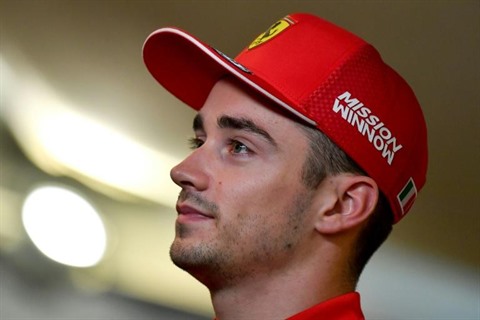 | Le pilote monégasque Charles Leclerc (Ferrari) en conférence de presse sur le circuit de Yas Marina à Abou Dhabi, le 28 novembre. |