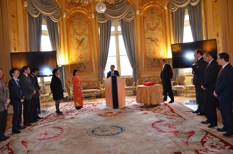 | L’ambassadeur Jean-François Girault a remis l’Ordre national du Mérite à Nguyên Thi Bich Huê, ministre-conseiller de l’ambassade du Vietnam en France, pour ses contributions importantes. |