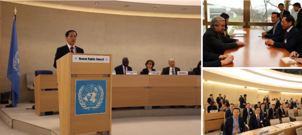 | La délégation vietnamienne conduite par le vice-Premier ministre et ministre des Affaires étrangères Bùi Thanh Son a laissé une forte impression lors de la 55e session ordinaire du Conseil des droits de l’homme de l’ONU, du 26 au 28 février 2024. |